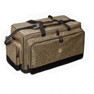 Torba jest wyposażona w wysokiej jakości zamki. Zewnętrzne zamki są wyposażone w sznurek z zakończeniem z tworzywa sztucznego, który jest rozszerzany na końcu, dzięki czemu można je szybko chwycić. Projekt torby uzupełnia nasz unikalny brązowy kamuflaż CARPATH z karpiowymi sylwetkami.