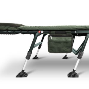 Podstawa łóżka to stabilna i lekka konstrukcja. Do tego wytrzymała na uszkodzenia mechaniczne. Konstrukcja pokryta jest mocno usztywnionym, pikowanym materacem o powierzchni polarowej, dzięki czemu jest ciepła i miękka w dotyku. Po bokach pokryta jest również wytrzymałą tkaniną 600D we wzornictwie C2G. Zagłówek posiada dodatkową wyściółkę z zielonego polaru dla jeszcze lepszego komfortu. Część środkowa jest wzmocniona od spodu i istnieje możliwość regulacji twardości materaca za pomocą Gumowego paska .