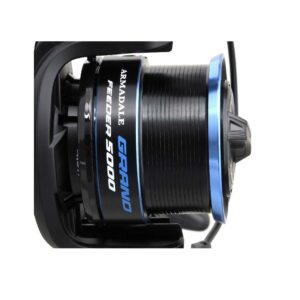Flagman Armadale Grand Feeder to nowość na rok 2024, seria wysokiej jakości kołowrotków klasy premium, które zostały specjalnie zaprojektowane do łowienia metodą Feeder w najtrudniejszych warunkach. Maksymalna wydajność, niezawodność i absolutny komfort łowienia – to główne idee zawarte w koncepcji tych wspaniałych kołowrotków. Korpus i rotor Armadale Grand Feeder wykonane są z lekkiego, sztywnego, a jednocześnie bardzo wytrzymałego tworzywa sztucznego. W mocnym, trakcyjnym, odpornym na zwiększone obciążenia mechanizmie z ulepszoną przekładnią ślimakową zastosowano 10+1 wysokiej jakości łożysk ze stali nierdzewnej, zamontowanych w najbardziej niezbędnych miejscach.Łożyska są sztywno osadzone w obudowie, dzięki czemu zachowana jest stabilna pozycja mechanizmu, a co za tym idzie, zmniejsza się zużycie i osiągany jest maksymalnie płynny i miękki ruch szpuli. Zwiększone odległości wyrzutowe zapewnia niskoprofilowa aluminiowa szpula ze stożkowym barkiem i bardzo wysokiej jakości ułożenie linki. Na szpuli zamontowane są dwa okrągłe, sprężynowe zaciski (metalowy i gumowy), co znacznie zwiększa możliwości mocowania różnych odległości łowienia.Odporna na zużycie rolka Anti-Twist z powłoką azotku tytanu zapobiega skręcaniu się rdzenia i zapewnia bezproblemowe użytkowanie dowolnego plecionki.