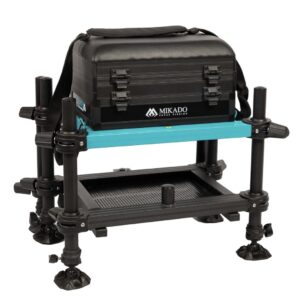 – Perforowana półka pod siedziskiem umożliwiająca przechowywanie pojemników lub torby w trakcie wędkowania,