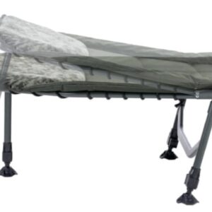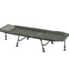 Składane łóżko polowe na 6 nogach ze zintegrowanym materacem o wymiarach 202 x 74 cm, obszytym wytrzymałym materiałem w kolorze zielonym. Może być wykorzystywane m. in. podczas biwaku bądź wędkowania.
