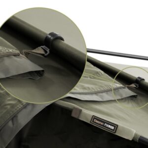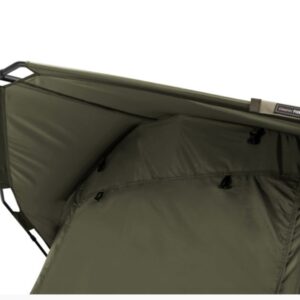 Każde okno w namiocie stanowi znaczną część jego ceny. Konieczne jest uwzględnienie materiału i bardzo pracochłonnego szycia. Zdecydowaliśmy się jednak płynąć pod prąd i zastąpiliśmy klasyczne wąskie wejście i dwa okna,które są obecne w większości namiotów, ultraszerokim wejściem, co ma kilka istotnych zalet. Zapewnia doskonały widok, jakbyś miał oba okna z przodu. Ponadto namiot można znacznie szybciej przewietrzyć (namiot ma również tylne okno) i w razie potrzeby szybko zamknąć. Wkładanie i wyjmowanie łóżek kempingowych jest teraz o wiele łatwiejsze! Namiot oferuje przestrzeń dla dwóch osób.