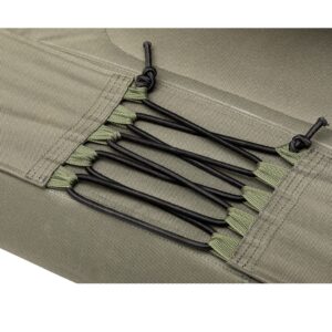 Zestaw łóżko na 8 nogach + 3 sezonowy śpiwór Avenger. System mocowania śpiwora do łóżka na zasadzie wpinanego na całym obwodzie zamka zapewnia stabilne połączenie, nie pozwalające na zsuwanie się śpiwora. Nogi z regulacją pozwalającą ustawić odpowiednio łóżko nawet na nierównym gruncie. Śpiwór 3 sezonowy, wypełniony włóknami kanalikowymi oraz obszyty od wewnątrz ciepłym materiałem pozwala na komfortowe spanie. Zewnętrzna część śpiwora wykonana z impregnowanego poliestru, nie szeleści, jest miękka w dotyku oraz odporna na przetarcia. Mocne zamki śpiwora posiadają specjalne zabezpieczenie, która zapobiega utracie ciepła, czy podwiewaniu. Materac łóżka jest wygodny, można regulować jego napięcie za pomocą gum znajdujących się z dołu łóżka.