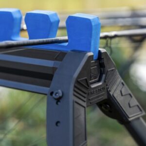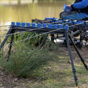 Zaprojektowany z myślą o bezpiecznym odkładaniu topów oraz wędzisk z kołowrotkami, który sprawdzi się w każdym terenie. Wyposażony w cztery regulowane, teleskopowe nogi, wsuwany piankowy grzebień oraz konstrukcję umożliwiającą układanie na płasko. Dodatkowo posiada 10 wypustek na ułożenie wędzisk. Jego zalety z pewnością zostaną docenione przez każdego wędkarza wyczynowego.