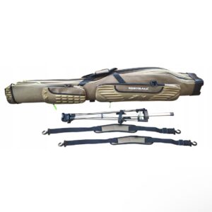 Sztywny pokrowiec ze stelażem do transportu wędzisk został wykonany z gęstej Cordury, która charakteryzuje się bardzo wysoka odpornością na przetarcia. Dół pokrowca został wzmocniony aby możliwe było pionowe ustabilizowanie go. Praktyczny pokrowiec który bez problemu pomieści sześć wędek z kołowrotkami i różnego rodzaju akcesoria. Posiada trzy komory kieszenie boczne na różnego rodzaju pudełeczka. W pokrowcu zastosowano szeroki i bardzo miękki pas do transportu oraz bardzo mocne suwaki. W pokrowcu zastosowano stojak by móc pionowo i bez problemu postawić pokrowiec na każdym podłożu tak aby go nie brudzić. Stojak jest odpinany więc możemy pokrowiec używać ze stojakiem lub bez.